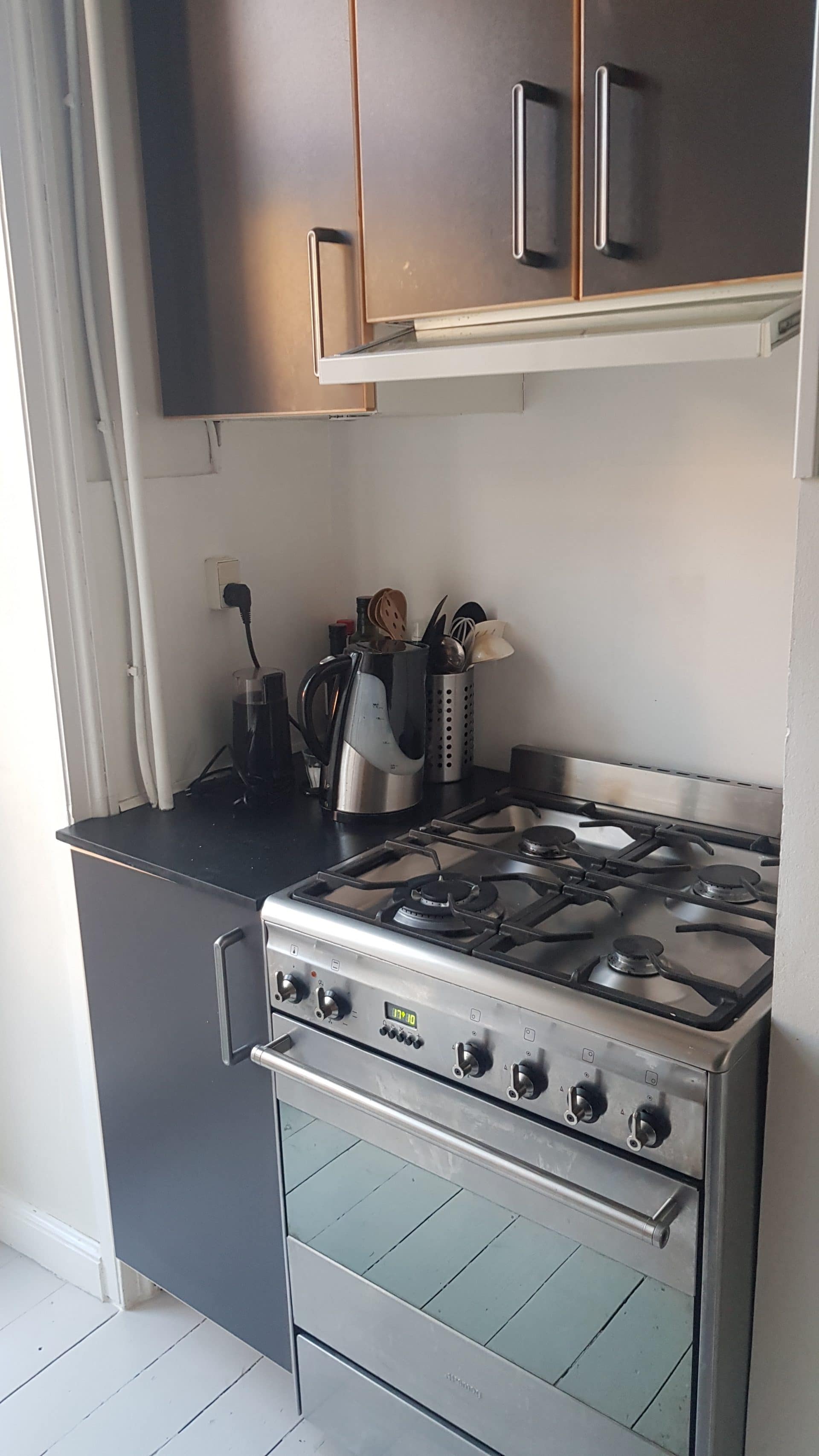 Soveværelset der vender mod gården er stort og lyst med stort IKEA klædeskab, og plads til kontorplads eller lignende. Der er nyere badeværelse som er blevet udvidet mod køkken og der er varme i gulvet, samt håndklædevarmer.