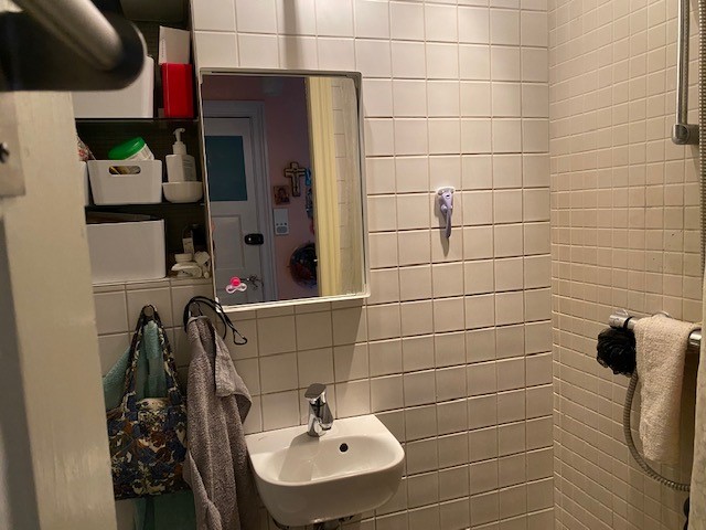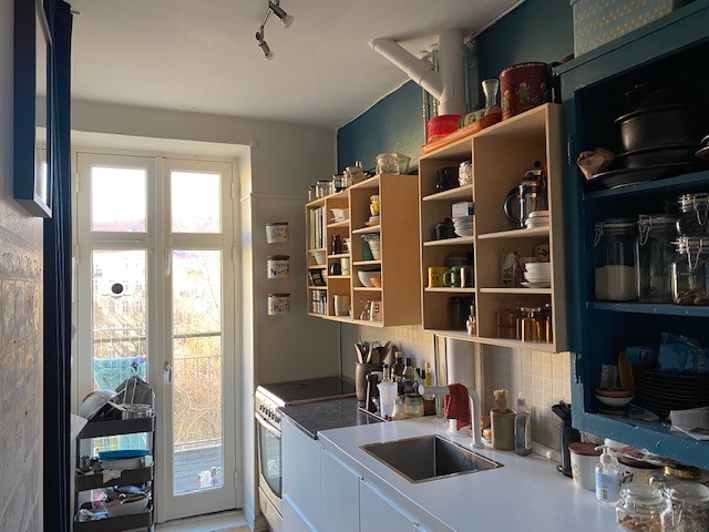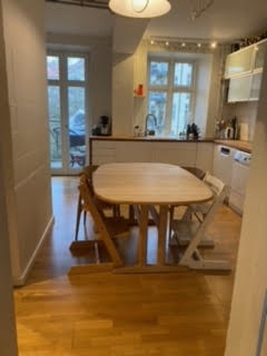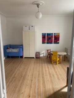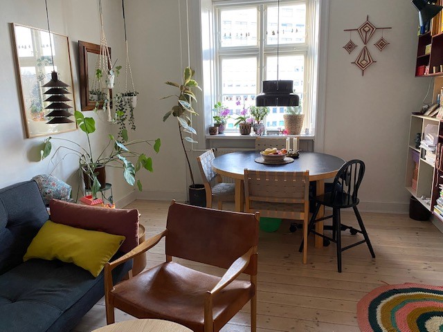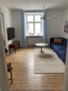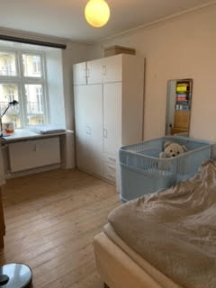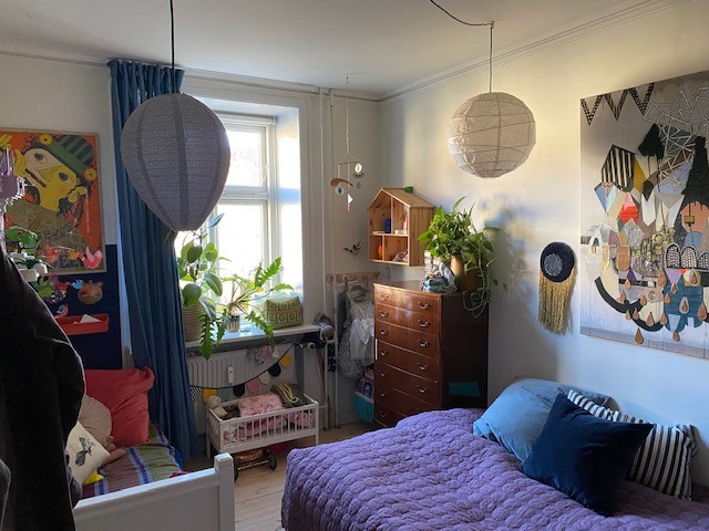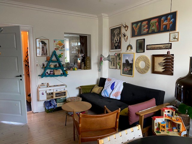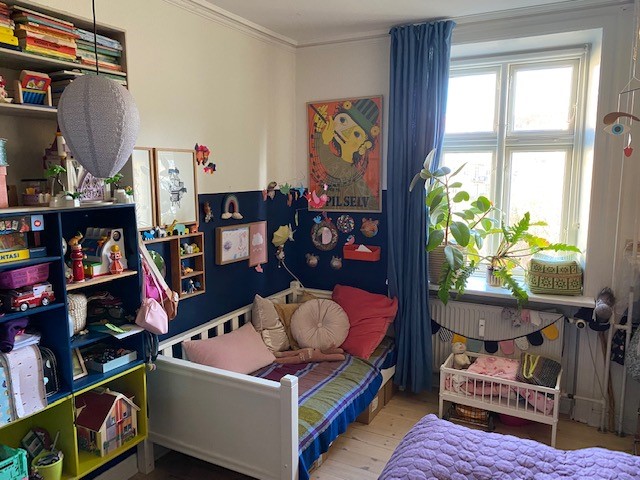 Efter at have kaldt den vores hjem i 6,5 år skal min datter og jeg videre til noget større i foreningen. Lejligheden har en central fordelingsgang med plads til tøj og sko. Badeværelse med hylder og fin bruseplads. Køkken med opvaske- og vaskemaskine og åbne hylder og udgang til altan med god udsigt fra 3. sal, hvor du kan spise morgenmad og frokost i solen. Soveværelse hvor du kan blive vækket af solen og have plads til dobbeltseng, et stort skab (og den lille ny). Stuen mod gaden har aftensol og kan fint rumme både spisebord og sofa. Mellem de to rum er et vindue, så der er kig gennem hele lejligheden. Med få justeringer kan det også blive til en god delelejlighed.