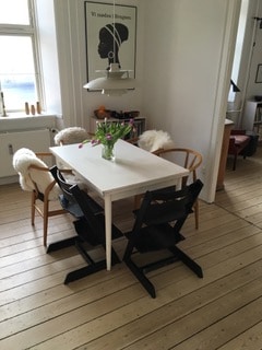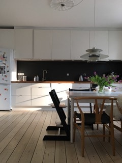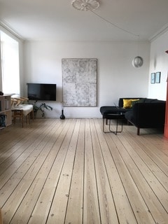 Køkken-alrummet og lejlighedens rummelige stue ligger ud mod Borups Plads og har et solrigt, sydvendt lysindfald hele dagen. Børneværelset og soveværelset vender mod det store, grønne gårdmiljø.