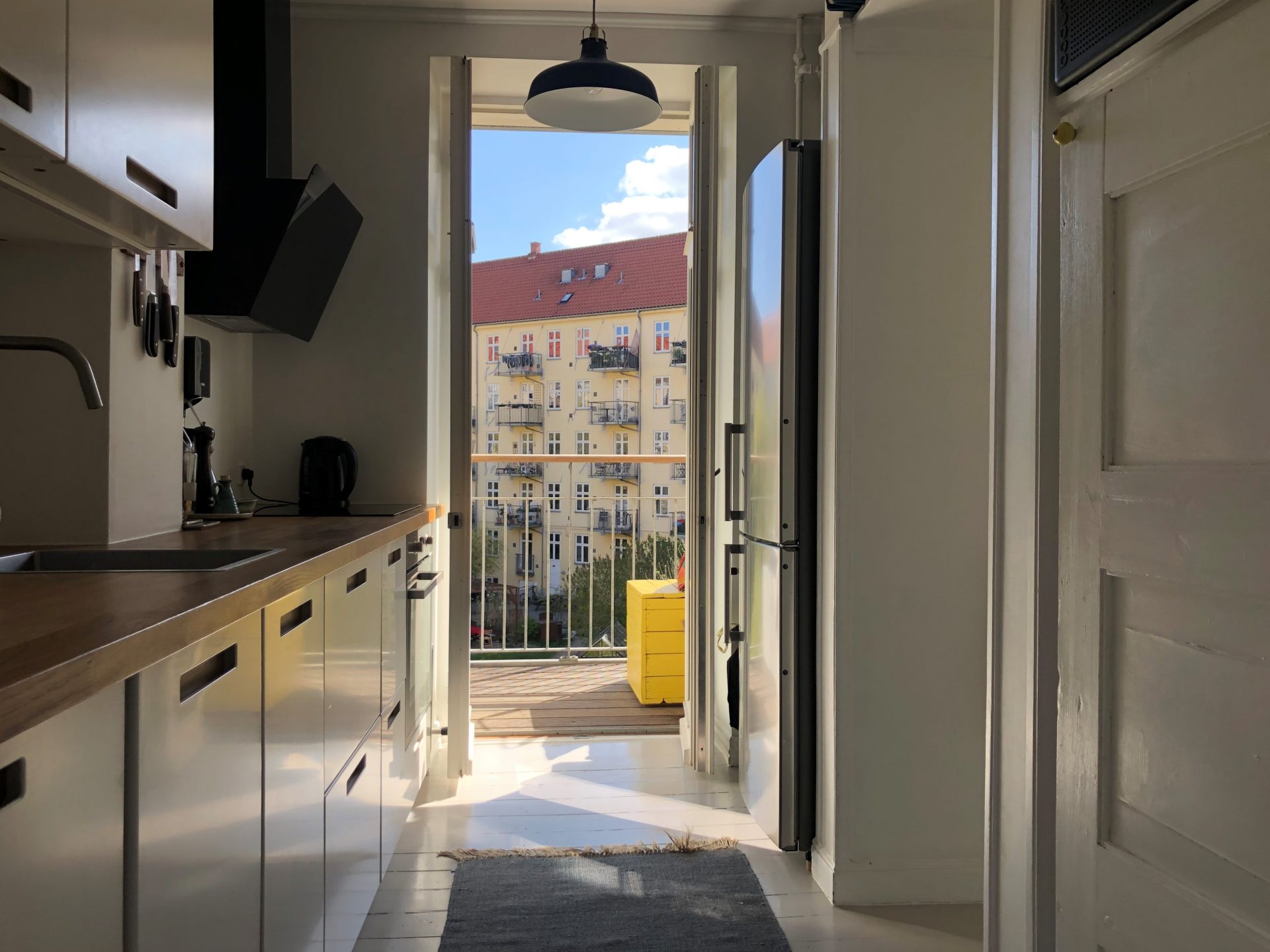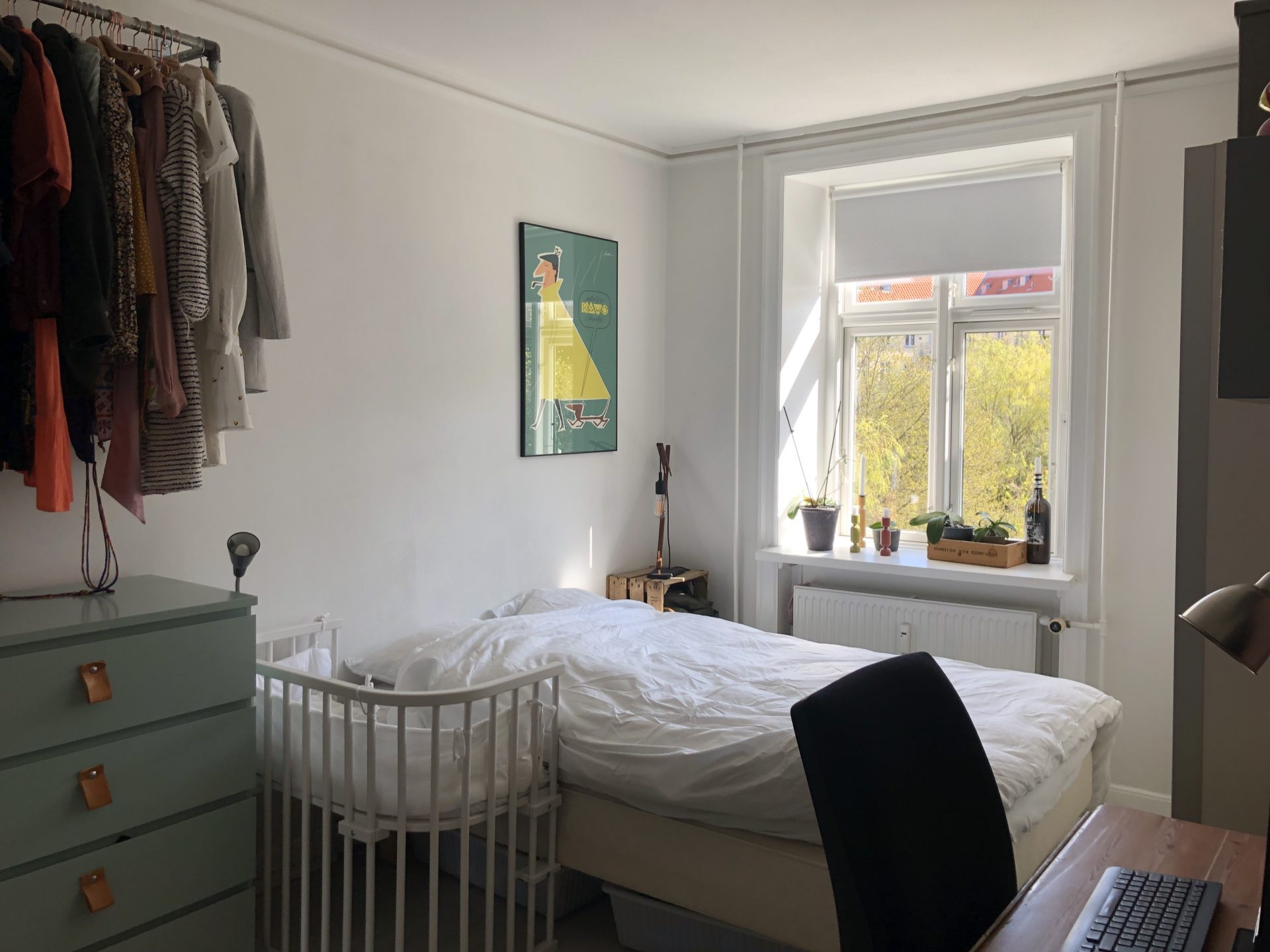 Lejligheden består af et nyere, rummeligt IKEA-køkken fra 2019 med opvaskemaskine samt vaskemaskine, et mindre badeværelse samt to gode værelser, der begge grænser op til en fordelingsgang, Fra køkkenet er der desuden adgang til en dejlig altan med morgensol, der ligger ud til en stor og frodig gård, hvor der findes aktiviteter for store og små.