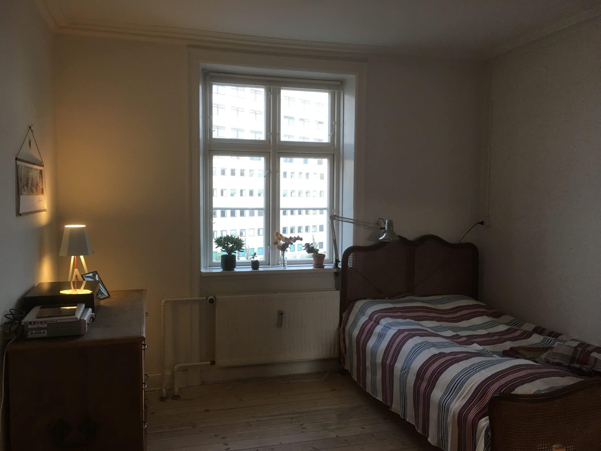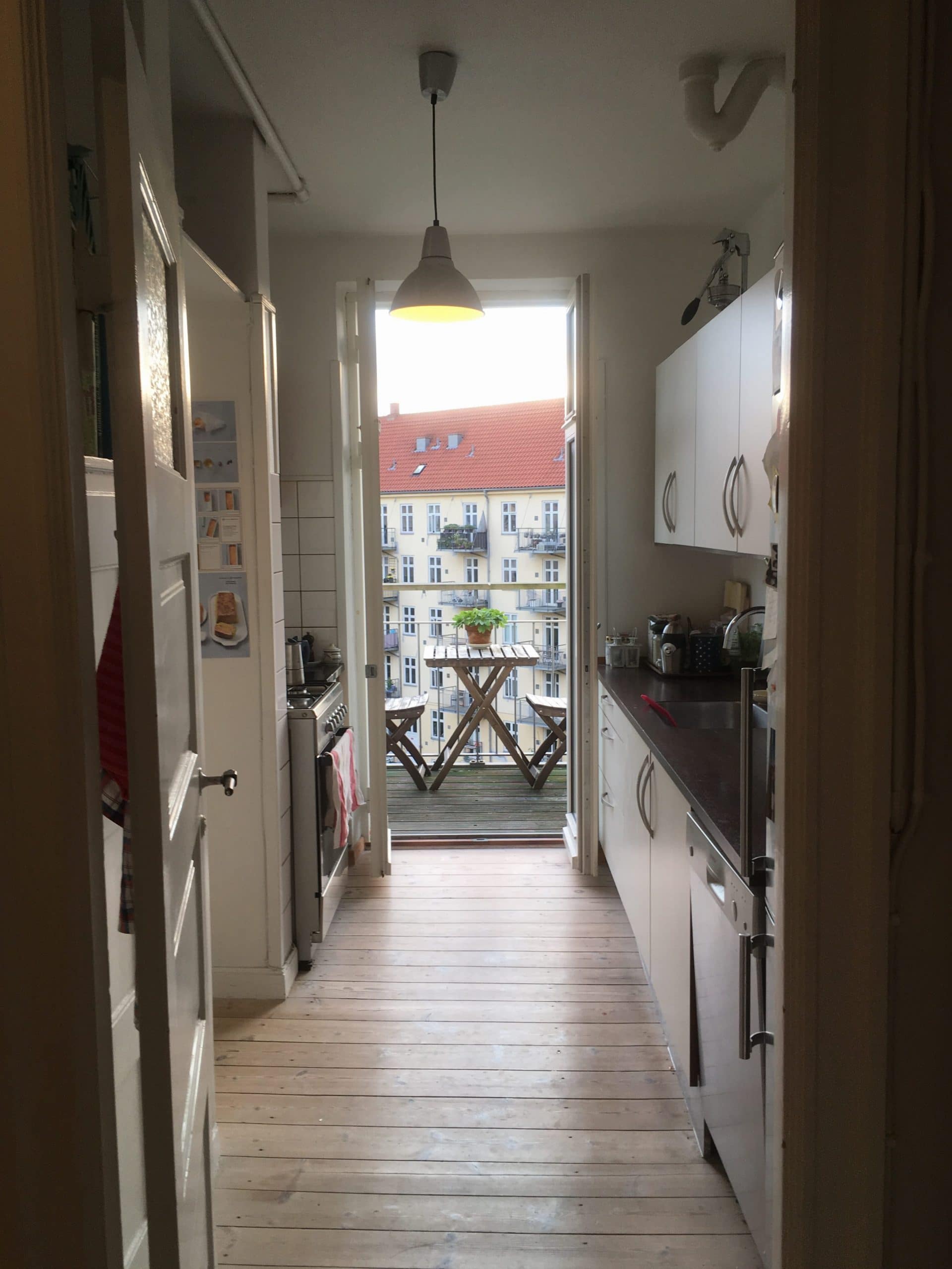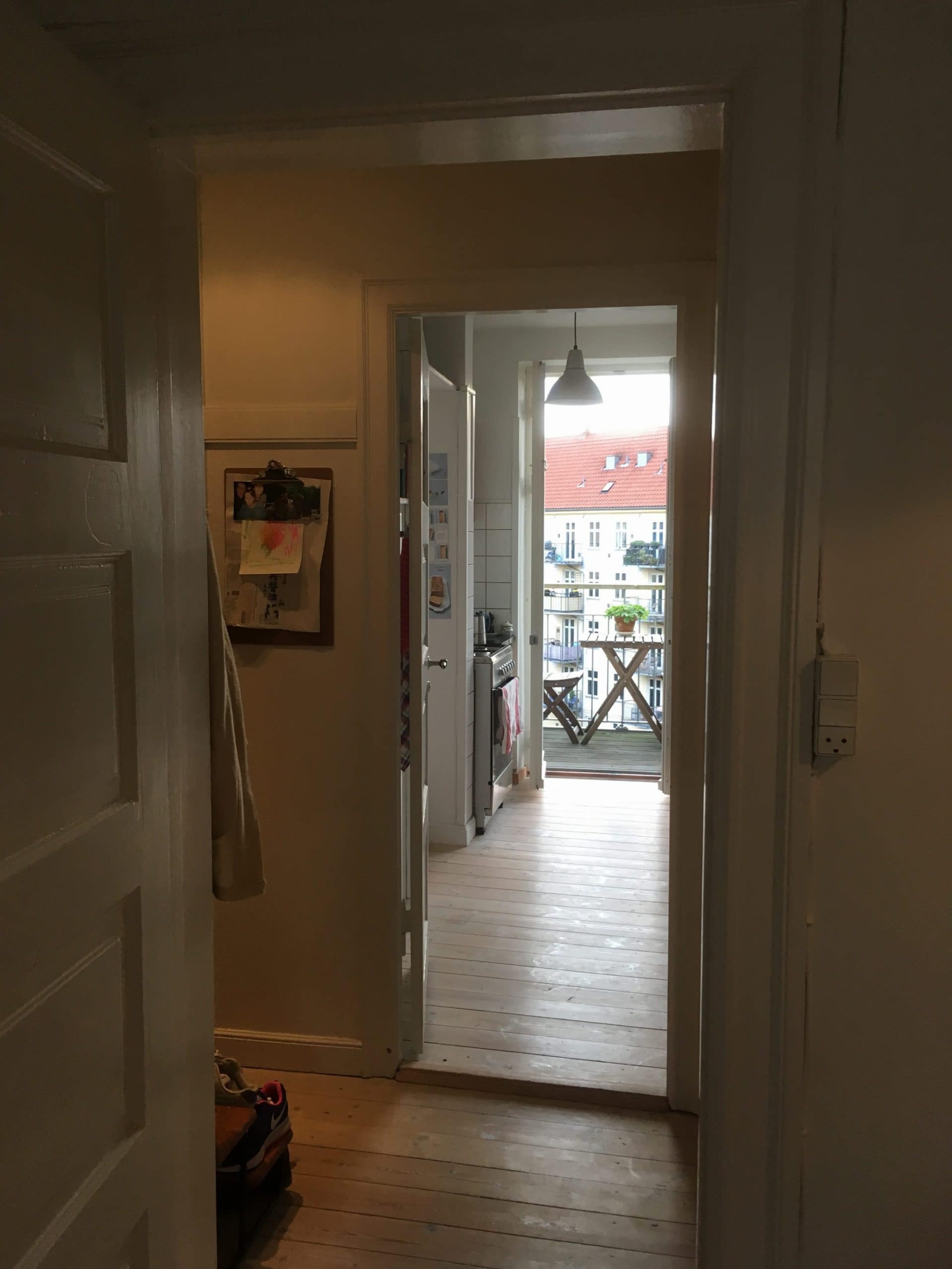 Lejligheden ligger på fjerde sal og består af opholdsrum, fordelingsgang, toilet med brus og køkken med udgang til altan med dejlig udsigt over den grønne gård. Lejligheden har et godt lysindfald fra begge sider, med solopgang på altanen og solnedgang gennem vinduet i opholdsrummet. Lejligheden er i god stand og rummer mange muligheder trods de få kvadratmeter.