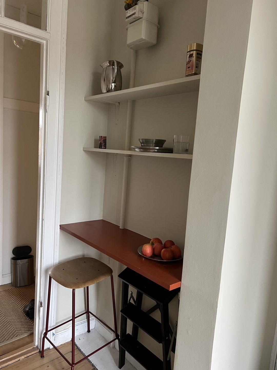 Renoveret i 2018 og 2020 med fibercement + ny sanitet på badeværelse samt nyt stålkøkken med fokus på både luft og maks udnyttelse af pladsen.