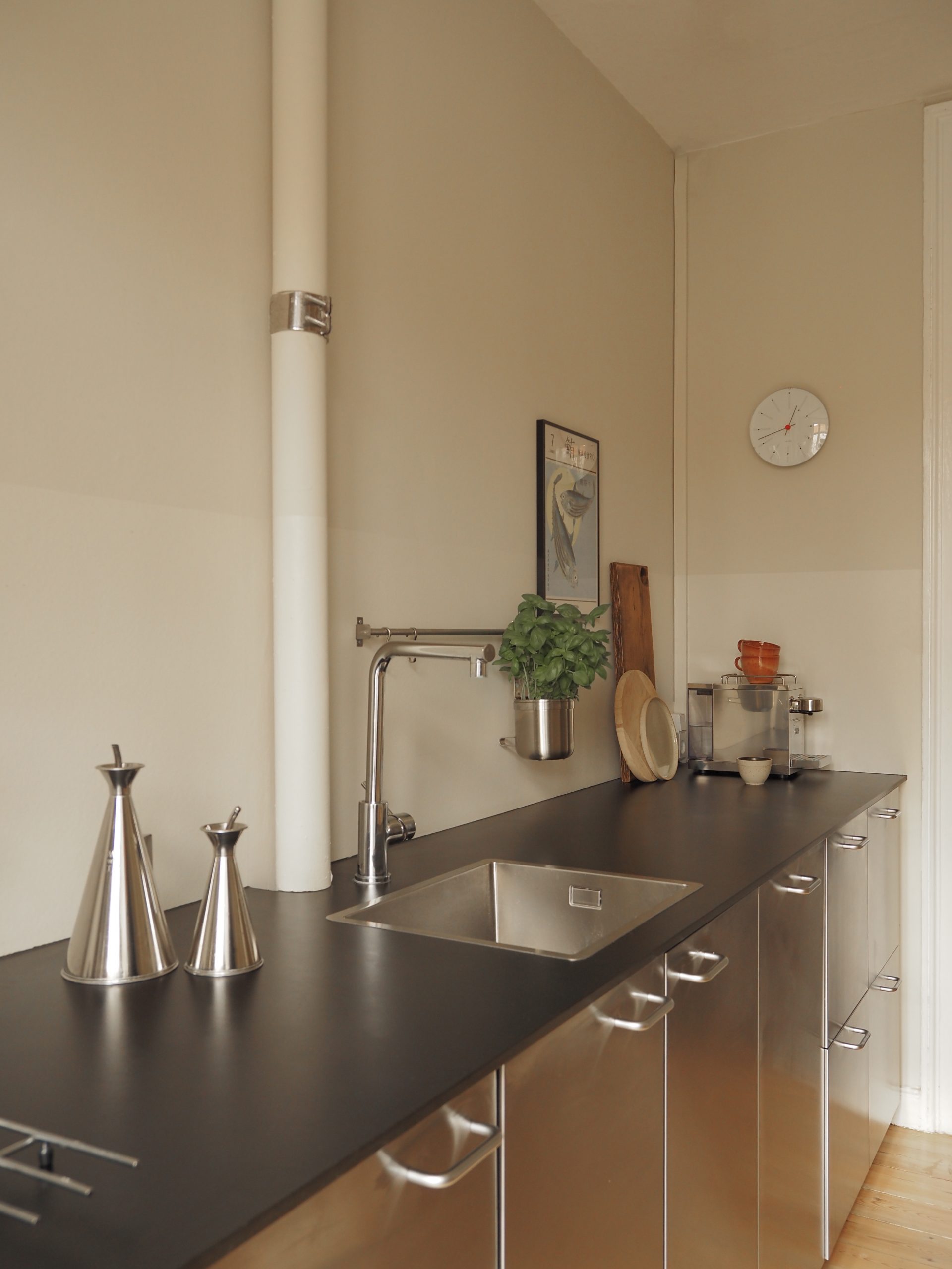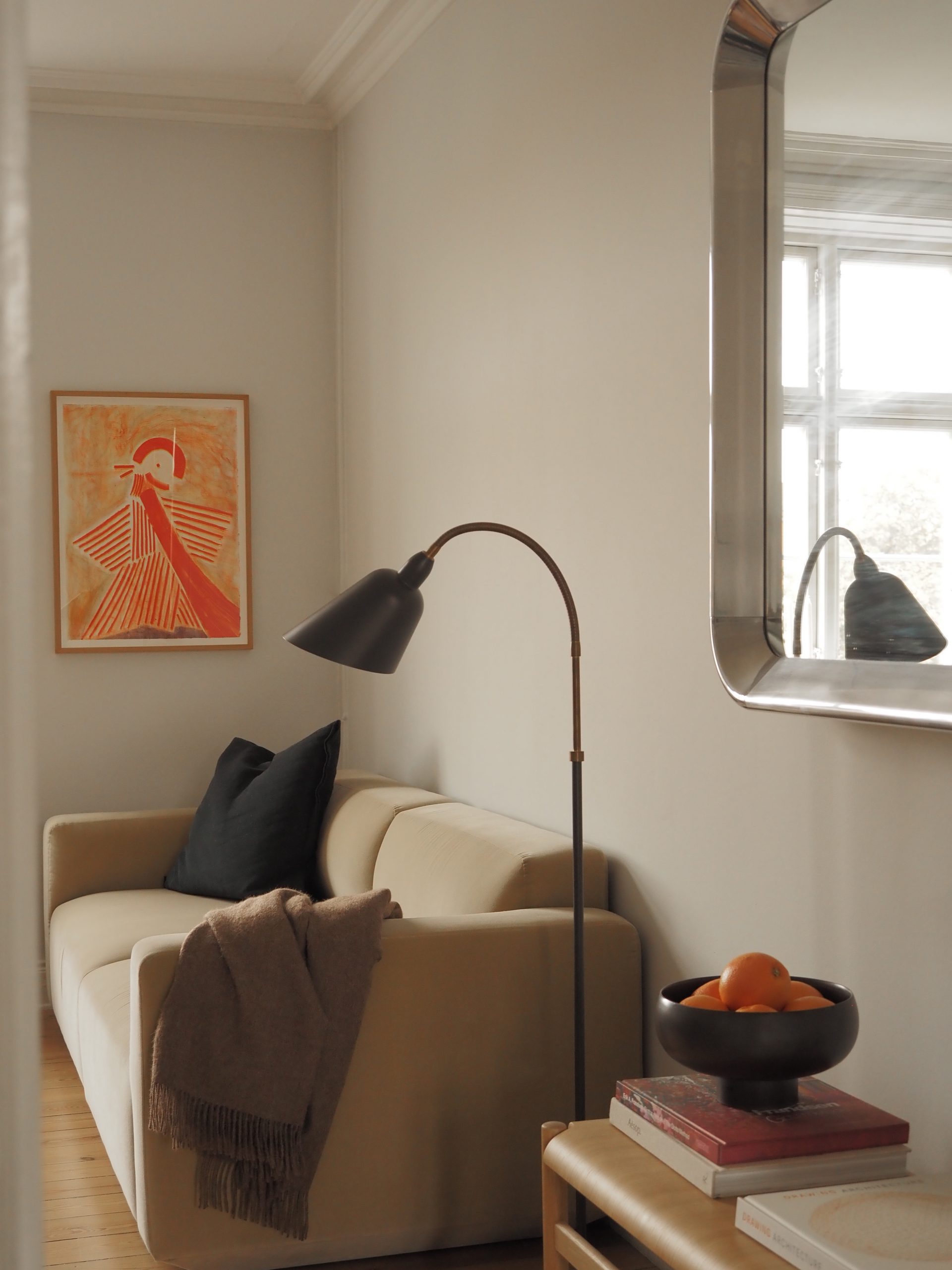 Lejligheden har ingen synlige indkig fra naboer da gården er femkantet og den ud mod gaden ligger foran et grønt areal.